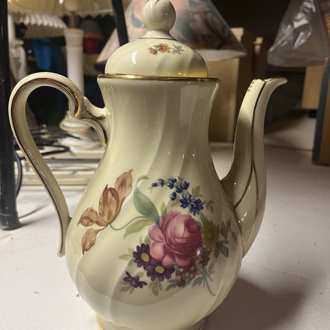 Royal Copenhagen Kaffekande med låg i porcelæn med blomsterdekor