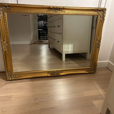Spejl med udskåret guldramme - Giv evt. bud!