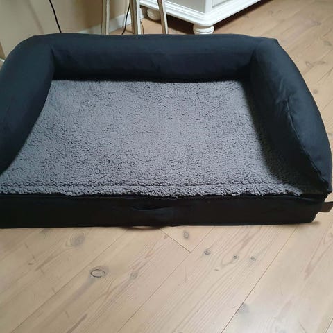 Den grå hundesofa har en stofbeklædning med vandtæt belægning, så væske ikke trænger ned i puden - ideel til ældre eller handicappede hunde. Betrækket kan tages af: Åbn de to lynlåse, fjern fyldet og vask for at holde sengen frisk og lugtfri. Undersiden er skridsikker, så sengen ligger stabilt, når hunden hopper ind og ud.