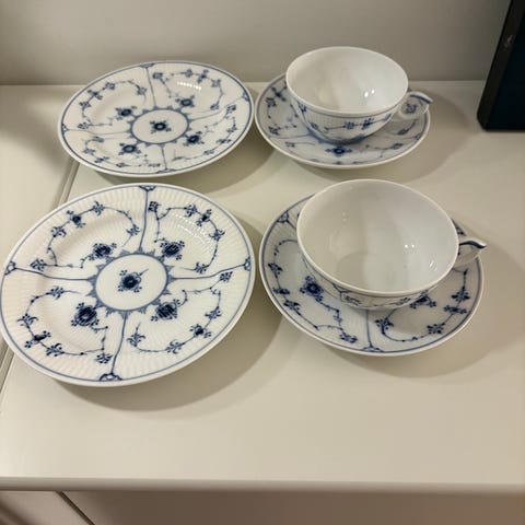 Muselmalet kgl porcelæn 7 kaffekopper ,flødekande mm