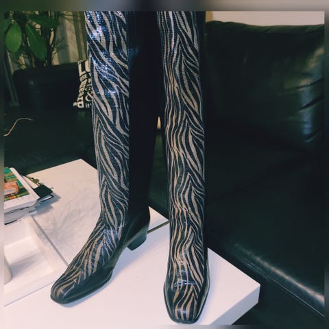 Lange støvler Brunella str 40, zebra, dyreprint, læder