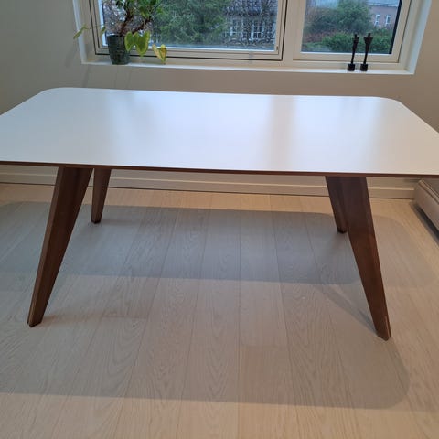 Meget velholdt bord, der kan bruges som både skrivebord og spisebord. Smukke trædetaljer.