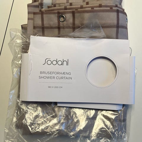 Badeforhæng fra Ferm Living. Badeforhænget ligner på ydersiden et almindeligt stykke stof. På indersiden er forhænget vandresistent, og kan derfor modstå vandsprøjtet fra bruseren.