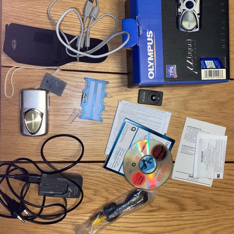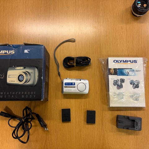 Kameraet sælges med to stk gode batterier og oplader, Mju-taske samt et Olympus xD picture card på 256MB.