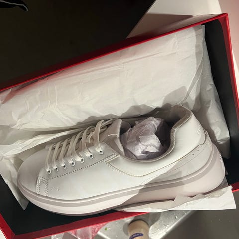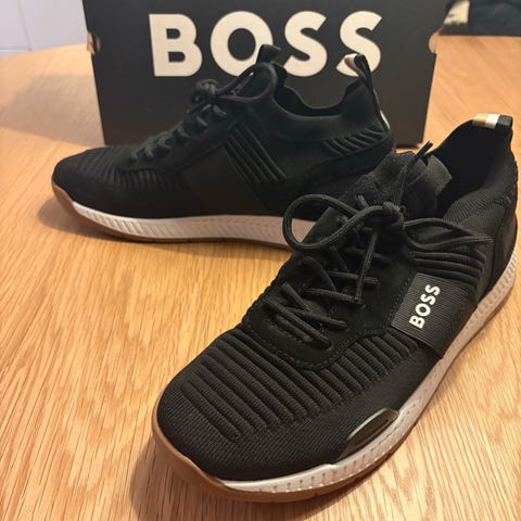 Skoen er i ny stand og imponerer med sit ekstremt unikke sort-røde design, der repræsenterer Haftbefehls rødder i Frankfurt.