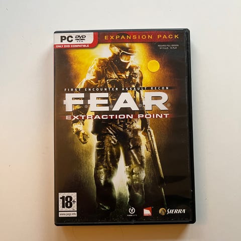 F.E.A.R. 2 Project Origin PC-spil. Spillet leveres til Windows-platformen og indeholder to DVD'er. Det er et action- og skrækspil med en aldersgrænse på 18 år.