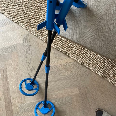 Stort set ubrugt metaldetektor. Nypris 550 kr. Bruger batterier, så isættes på undersiden.