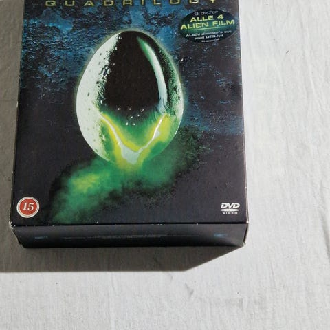 Alien Quadrilogy DVD-samling med alle fire film fra Alien-serien. Indeholder DVD-disc og cover med karakteristisk design. Anvendelig til afspilning på kompatible DVD-afspillere.