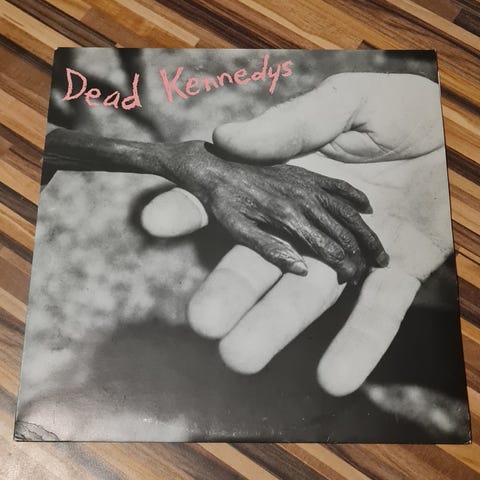 Dead Kennedys LP plade med cover, der viser et kors med forskellige symboler og teksten 'In God We Trust, Inc.' Pladen er i standard LP-format.