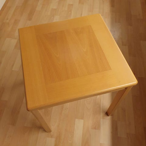 Enkelt og elegant hjørnebord i mørkt træ