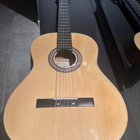 Admira Paloma er en spansk guitar til begynderen. Den har en normal størrelse krop og hals og er nem at spille på. Den fremstår brugt - se billederne. Kan prøves og købes i Aalborg. Ingen bytte eller forsendelse.