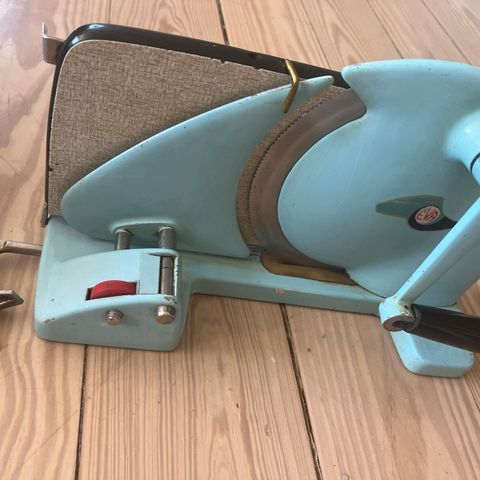 Maskinen er komplet med original rundklinge og fremstår usædvanligt velbevaret uden nævneværdig slitage på træ eller metal.