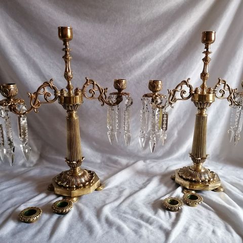 2 fine franske lysestager i messing og porcelæn