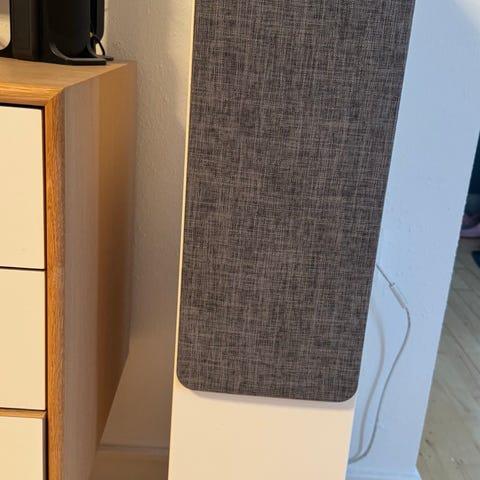 • Bemærkning: Der er et lille hul i stoffronten på den ene højttaler (se sidste billede). Det er kun kosmetisk og påvirker ikke lyden