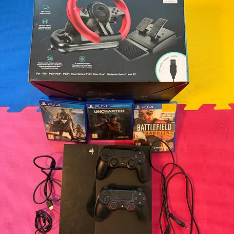 Sony Playstation 4 konsol med to controllere og spil