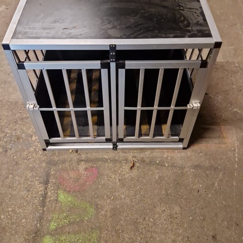 Enkeltbur XL med ekstra kraftige tremmer, som derfor minimerer lydene fra buret når man kører. Ideelt til den større hund på 30-45 kg.