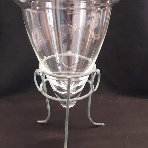Ville være flot med lidt sten i bunden og stort lys ovenpå, eller som blomster opsats med hængende planter i