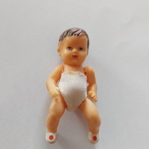 Lille vintage plastdukke, perfekt til dukkehus