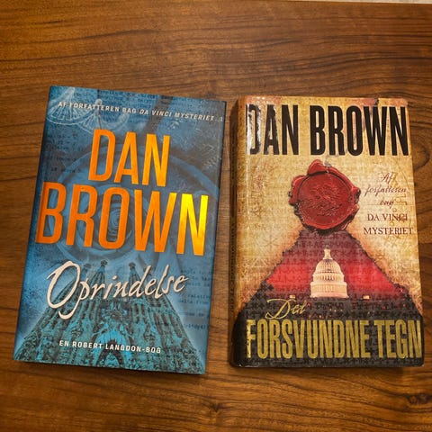 Dan Brown: Det forsvundne tegn Bog. Roman af Dan Brown, der fortsætter historien fra Da Vinci Mysteriet. Bogens format og materiale er standard for trykte bøger.