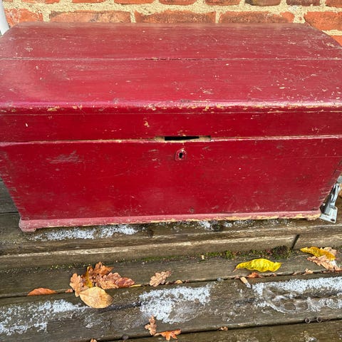 Antik Trækiste med Blomsterdekoration