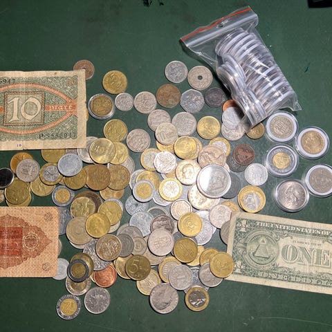 Blandet møntsamling bestående af mønter fra over 12+ forskellige lande.