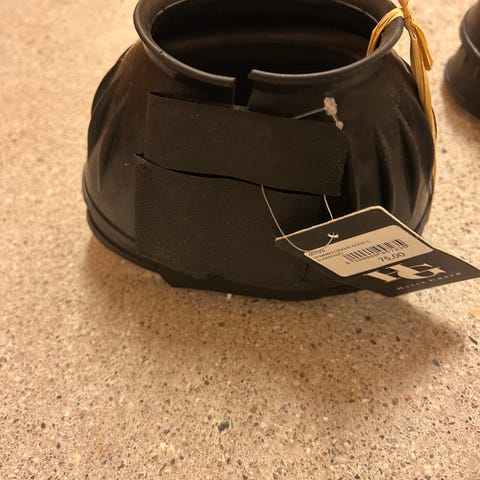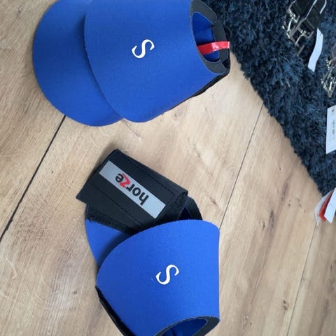 Premier Equine magnetklokker i blødt materiale, str large (full). 1 sæt med venstre og højre. Dobbelt velcro lukning. Bemærk, det er ikke ride klokker, så de går ikke så langt ned som “normale “klokker”. Brugte men pæne, har dog noget afsmitning fra “hov mod magnet” på indersiden, ingen betydning for brug. Det er den første model de lavede. Sælges for 75,- + evt. forsendelse. Kan også afhentes i Græse Bakkeby, Frederikssund