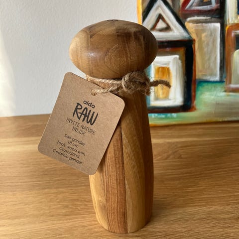 Saltkværn og skål i teak
