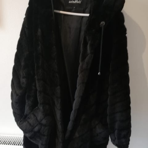 Utrolig flot lang frakke med sort pelskrave og for. Lidt ud over det sædvanlige.