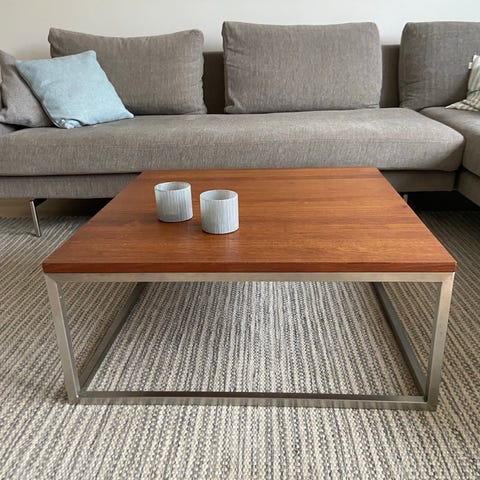 Table is in excellent used condition – minimal signs of wear, solid walnut wood with no damage to surface or drawer (see photos). Dimensions approx. H40-50 cm x W/D suitable for sofa side (exact specs on site).
