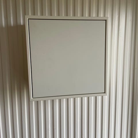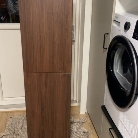 På billederne står skabet løst oven på en sokkel fra Trævarefabrikernes Udsalg (nypris 199 kr.).