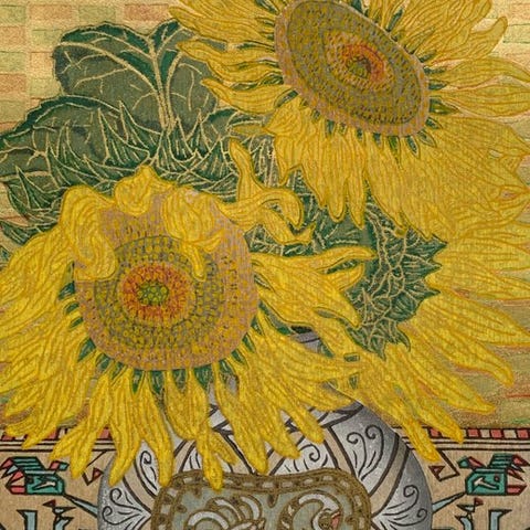 Hajime Namiki bruger altid en guld- eller sølvbaggrund. I dette tryk brugte han begge dele. Man ser dette træ i