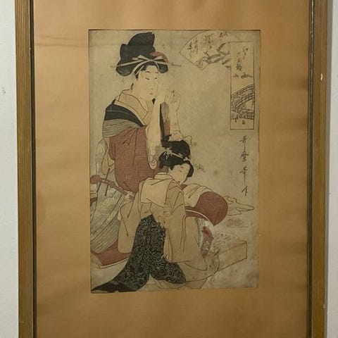 Isoda Koryusai, Hashira-e træsnit Kabuki-skuespiller Ichimura Uzaemon, Japan fra det 18. århundrede, i god stand, indrammet, motivstørrelse 66 × 12 cm (rammestørrelse 68 × 13 cm), signeret i pladen. Klik på den blå "gå til varen" knap, for at købe eller byde på denne vare. Den samlede pris vil blive vist inden du afgiver dit bud.