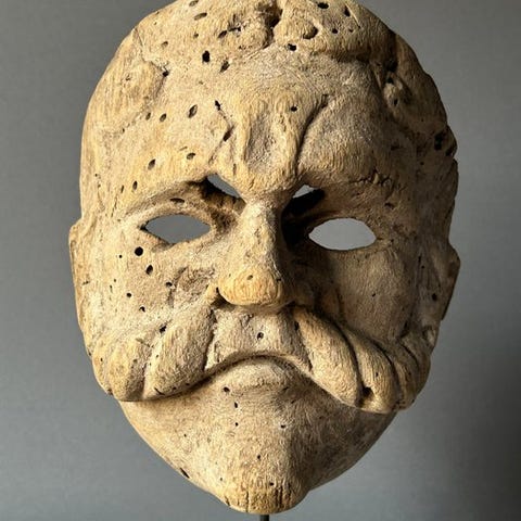 Populær træskåret og polykrom maske. Billede af en legende guddom.