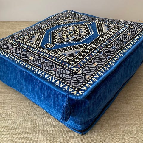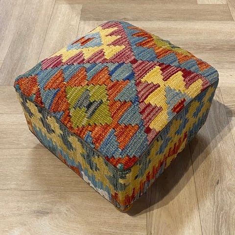 Vores puffer er et vidunderligt dekorativt produkt, som du nemt kan bruge i alle hjørner af dit hjem og din have. Størrelsen på puden er ca. 48 (bredde) x 48 (længde) x 25 (højde). Vores puffer er lavet af 100% ren uld fra gamle tæpper. Da de originale anatolske tæpper bruger naturlige farvestoffer og materialer, er hvert stykke unikt. Der kan ses forskelle i farver, naturlig slitage, asymmetriske mønstre og linjer – dette er naturen af gamle tæpper, hvilket gør dem unikke kun for dig. Vores puffer er håndlavede med den højeste kvalitet af syning, så du kan nyde dem i mange år. Det er op til dig at fylde den, du kan fylde den med skumstykke, formet skum, uld eller bomuld. Den sendes tom.