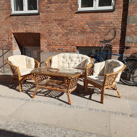 Vintage bambus terrasse møbel sæt bestående af fem dele.