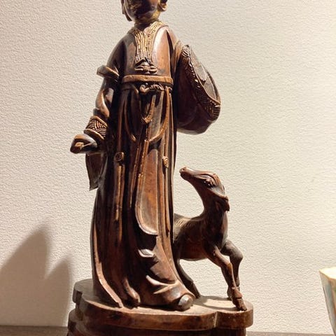 Tilbudt er et meget fint udført repoussé-stykke håndværk. Det skildrer et kapitel af Buddhas liv med et stort følge. Stående under den ceremonielle paraply står han flankeret af to af sine disciple. Slangen, som han står på, symboliserer velvilje og den beskyttende funktion af slanger i buddhistisk mytologi (Naga). En af hans følgebærere bærer sejrsknappen (Dhvaja), et symbol på Buddhas triumf over uvidenhed, begær og frygt. De to abe-guder, der byder honning, kunne være en henvisning til hans ophold i Parileyyaka-skoven. Figurerne og vegetationen er vidunderligt detaljerede. Over tid har dette smukke kunstværk udviklet en dejlig patina. Der er et lille hul i midten