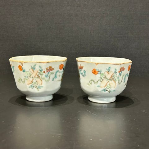 To te-skåle - Sølv - Tibet/China - det 19. - 20. århundrede