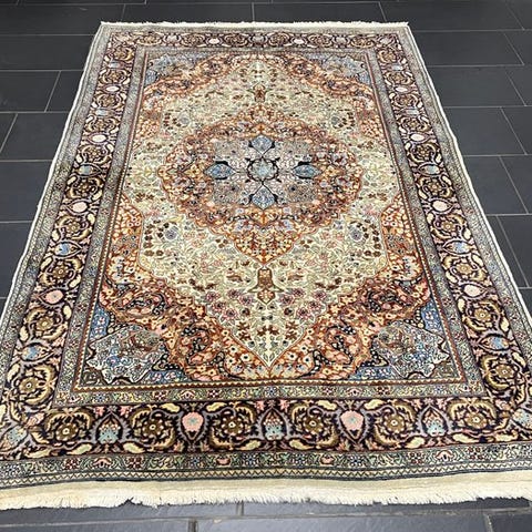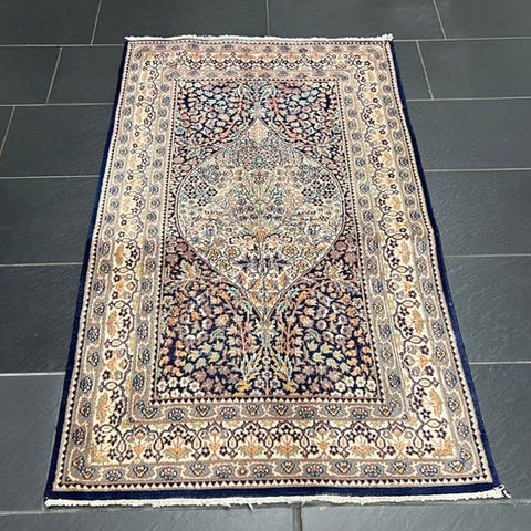Tilbydes en håndknyttet orientalsk tæppe i kasmir Ghoum.