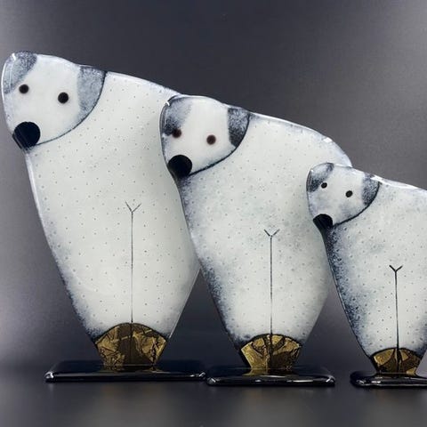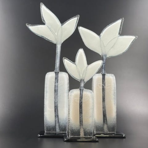 Opal- og klart glas smeltes sammen for at skabe disse elegante dekorationer til ethvert rum i dit hjem. Deres enkelhed gør dem unikke og umulige at kopiere.
