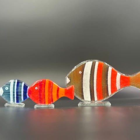 Moderne dekorative glas-daisy'er håndlavet i en fusions-teknik af Maciej Habrat, en polsk kunstner, der har arbejdet med glas i over 20 år.