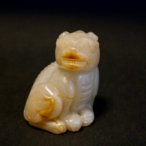 En charmerende udskåret skulptur i hård sten fra det 20. århundrede af en knæbøjende elefant, der symboliserer fred, stabilitet og held i traditionel kinesisk kultur. Figuren er udskåret i en rund, blid form med glatte overflader og naturlige sten-inklusioner, der giver den karakter.