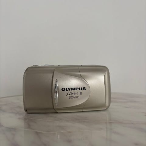 Her foreslår jeg en Olympus mju Zoom 105, en analog kompaktkamera fra mju-serien, kendt for sin pålidelighed og billedkvalitet. Denne model er værdsat for sin kompakte størrelse, præcise autofokus og typiske Olympus-udseende. Den er blevet eftertragtet og forbliver et fremragende valg til daglig fotografering såvel som til samling.