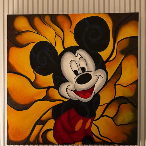 Outside313 (XX) præsenterer Mickey Mouse - Love Art - Neon black edition, et kunstværk fra 2025 udført med airbrush på lærred i gadekunstens stil, 105 × 70 cm, oprindeligt produceret i Italien og håndunderskrevet på bagsiden til autentificering, med en hvidkant på 5 cm omkring og COA inkluderet. Klik på den blå "gå til varen" knap, for at købe eller byde på denne vare. Den samlede pris vil blive vist inden du afgiver dit bud.