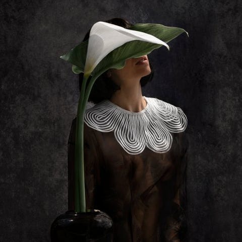In #27 In Pressure of Petals, kroppen hænger mellem opstigning og overgivelse. To lysende former rejser sig som vagter, og sætter deres tilstedeværelse i rummet, bøjer blikket, omskriver identiteten gennem en stille kraft. Det, der virker venligt, bliver til befaling; det, der ser ud som pynt, bliver til lov. Et portræt af lydighed forklædt som nåde.