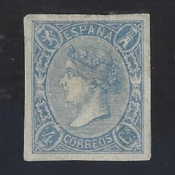 Oprindelse: Spanien; Titel: Rarísimo 12 Cuartos Isabel II; Catalogusnummer: Edifil 100A; År: 1868; Tilstand: MNG (ny uden gum). Klik på den blå "gå til varen" knap, for at købe eller byde på denne vare. Den samlede pris vil blive vist inden du afgiver dit bud.