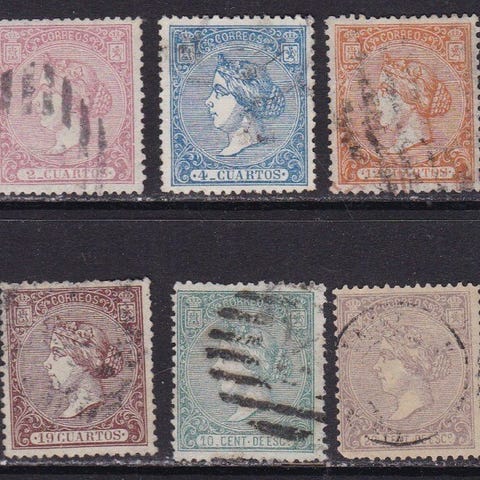 Rarisimo frimærke på 12 Cuartos Bermellón tilhørende serien.