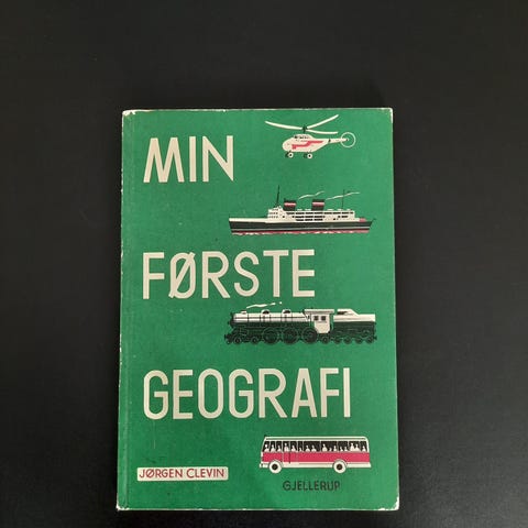 Min første geografi. Om Danmark, Grønland og Færøe, Jørgen Clevin, emne: geografi, Illustreret af Jørgen Clevin med div.illustrationer og kort.