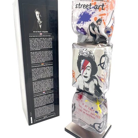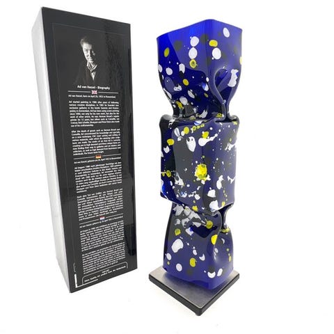 Ad van Hassel (1953), PopArt Communication - Haring - Luxury Art Candy Toffee, et mixed-media værk i laserbeskåret og ovnbøjet perspex fra 2023 på en luksusbase med to sider, 33 × 10 × 10 cm, vægt 1 kg, håndsigneret, lavet i Nederlandene, i fremragende stand, med COA og sort luksusæske. Klik på den blå "gå til varen" knap, for at købe eller byde på denne vare. Den samlede pris vil blive vist inden du afgiver dit bud.