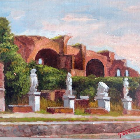 Arco di Tito er et originalt oliemaleri på lærred af den italienske kunstner Luigi Garzione (født 1948), signeret for og bagpå, med arkitektur som motiv og multicolor, skabt i 1990 inden for perioden 1990–2000, 24 × 30 cm, vægt 50 g, oprindelse Italien, i god stand, solgt af Galleria. Klik på den blå "gå til varen" knap, for at købe eller byde på denne vare. Den samlede pris vil blive vist inden du afgiver dit bud.