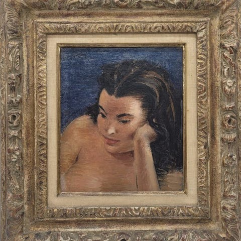 Dette originale oliemaleri præsenterer en fragmenteret menneskelig figur udført med bevidst tilbageholdenhed. Kompositionen isolerer dele af kroppen i stedet for at afbilde en fuld figur, hvilket flytter opmærksomheden fra identitet eller fortælling mod den fysiske form og gestus. Den langstrakte arm og den afskårne overkrop skaber en afbalanceret, men anspændt rumlig struktur inden for firkantformatet.